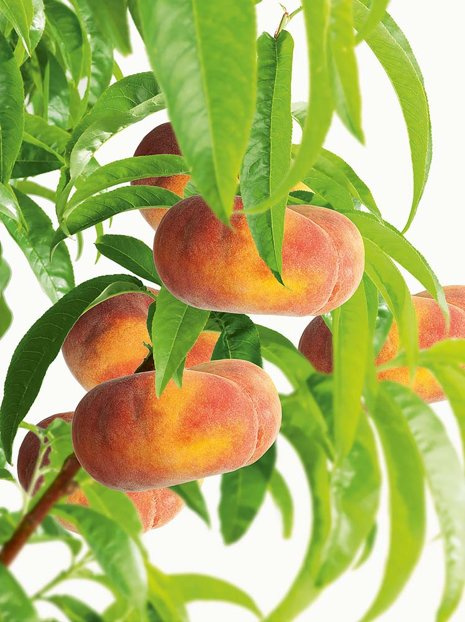Zwergpfirsich mit flachen Früchten